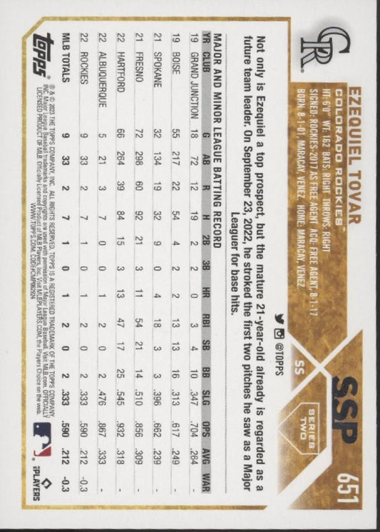 Ezequiel Tovar 2023 Topps Series 2 SSP RC #651