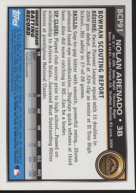 Nolan Arenado 2010 Bowman Chrome #BCP91 #2