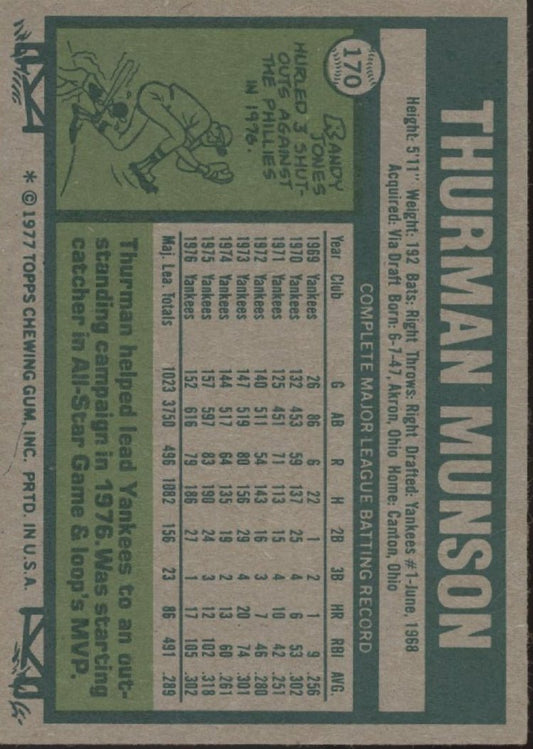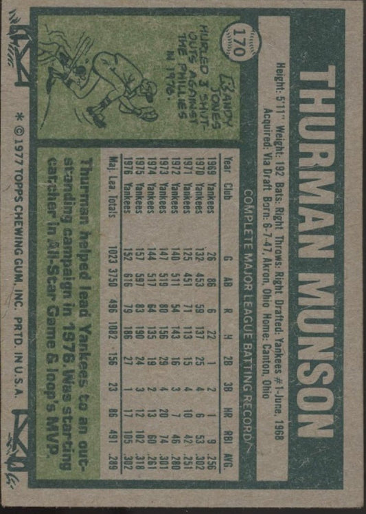 Thurman Munson 1977 Topps #170 New York Yankees VG-EX #1