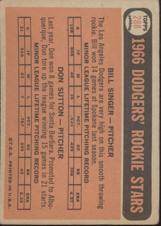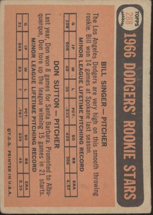 Bill Singer / Don Sutton 1966 Topps Rookie Stars RC #288 GD #1
