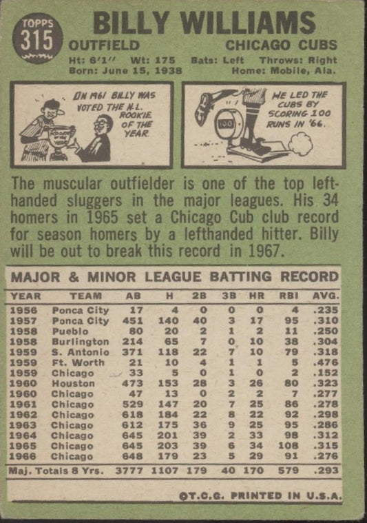 Billy Williams 1967 Topps #315 Chicago Cubs VG