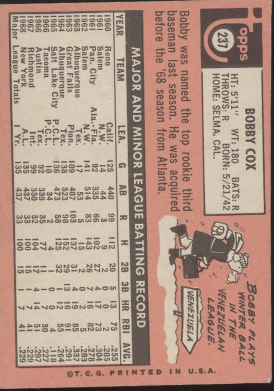 Bobby Cox 1969 Topps RC #237 New York Yankees VG-EX