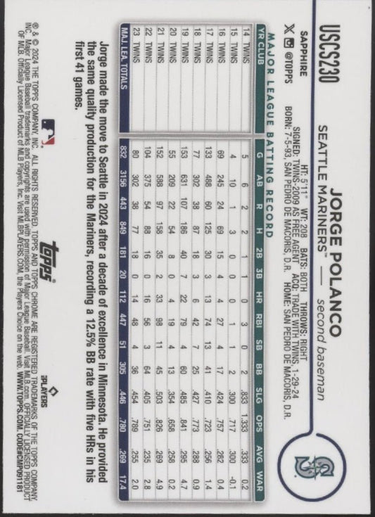 Jorge Polanco 2024 Topps Chrome Sapphire Ice Refractor #USCS230