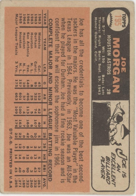 Joe Morgan 1966 Topps #195 Houston Astros PR #2