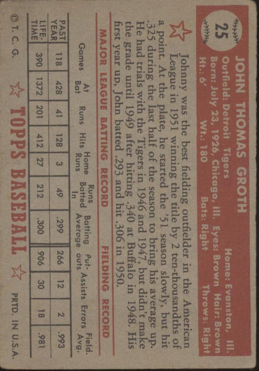 Johnny Groth 1952 Topps #25 Detroit Tigers VG