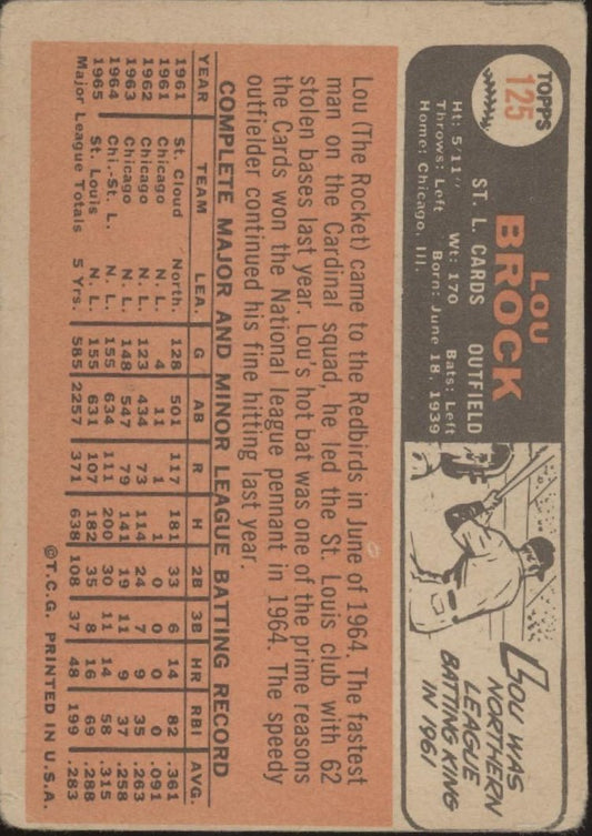 Lou Brock 1966 Topps #125 St. Louis Cardinals GD #1