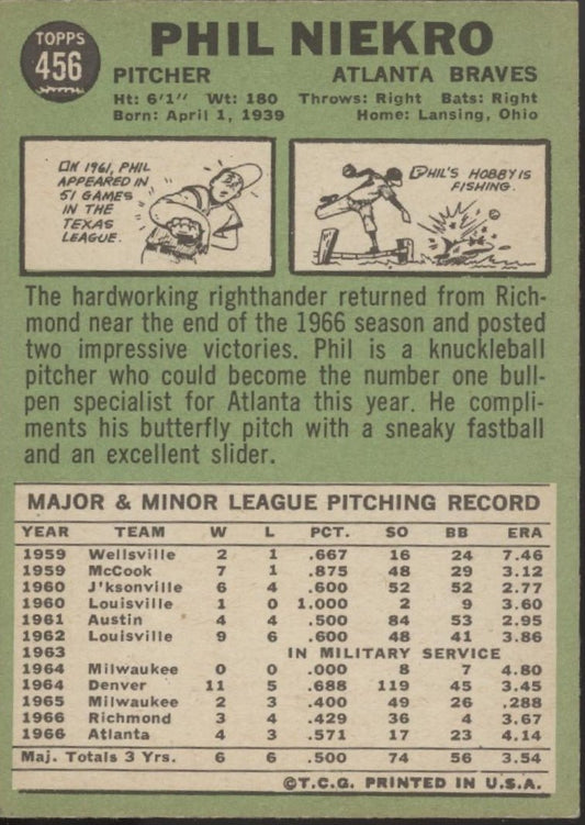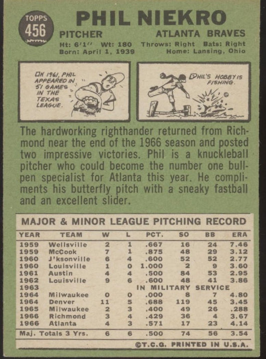 Phil Niekro 1967 Topps #456 Atlanta Braves VG-EX #2