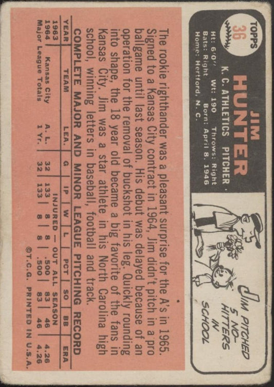 Jim Hunter 1966 Topps #36 Kansas City Athletics PR