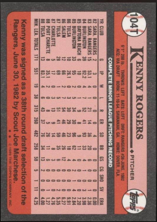 Kenny Rogers 1989 Topps Traded Tiffany #104T