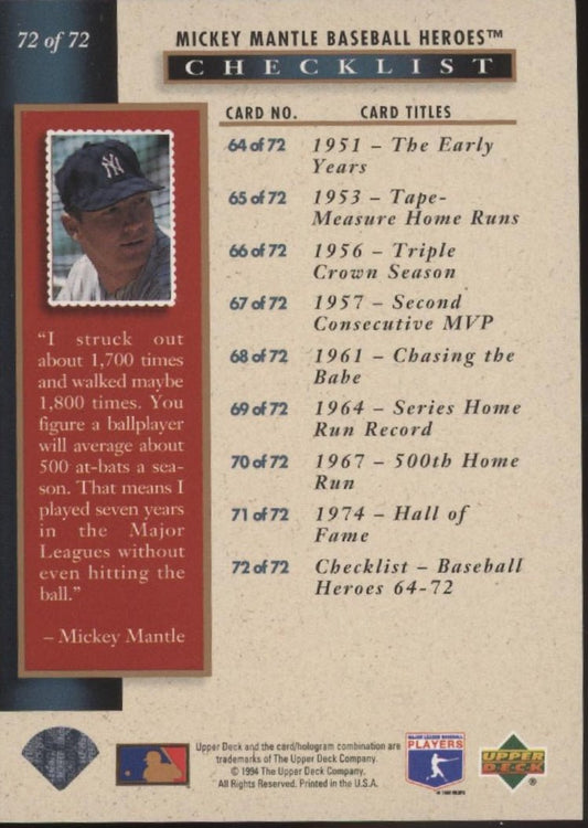 Mickey Mantle 1994 Upper Deck Mantle Heroes #72
