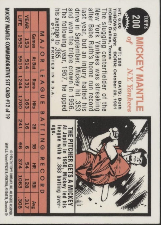 Mickey Mantle 1996 Topps Mickey Mantle Commemorative Set with Coating #12
