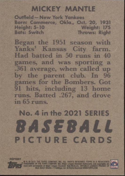 Mickey Mantle 2021 Topps x Bowman 1951 Reprint #4