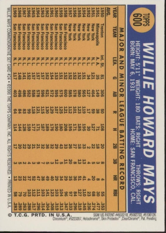 Willie Mays 1996 Topps Willie Mays Commemorative Set with Coating #24