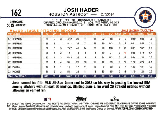 Josh Hader 2024 Topps Chrome Xfractor Refractor #162