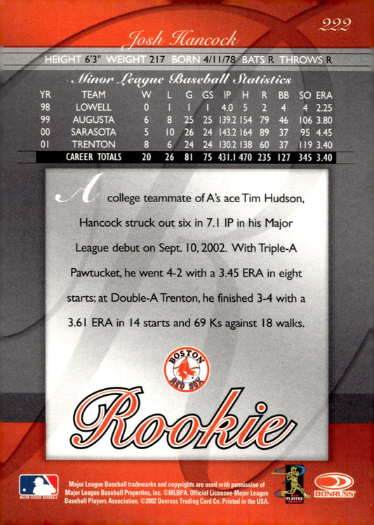 Josh Hancock 2002 Donruss Elite Extra Edition Red 0435/1000 #222