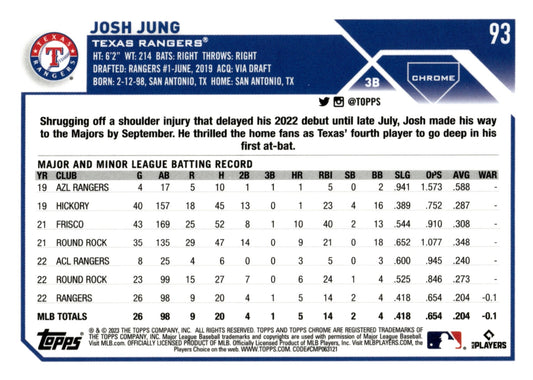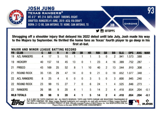 Josh Jung 2023 Topps Chrome RC #93 #2