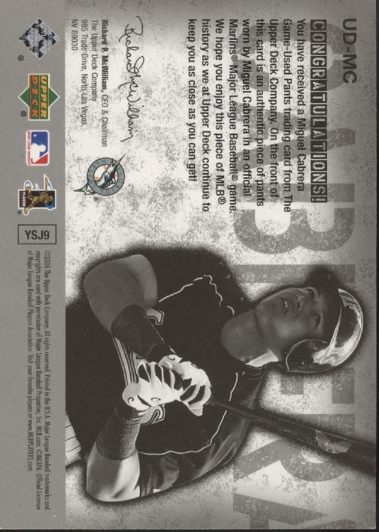 Miguel Cabrera 2006 Upper Deck Game Materials Swatch #UD-MC
