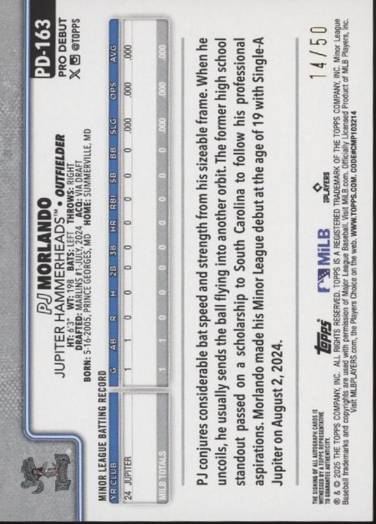 PJ Morlando 2025 Topps Pro Debut Gold Foil Auto 14/50 #PD-163