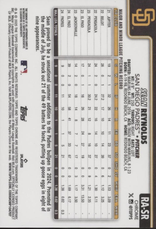 Sean Reynolds 2025 Topps Chrome Green Refractor RC Auto 39/99 #RA-SR