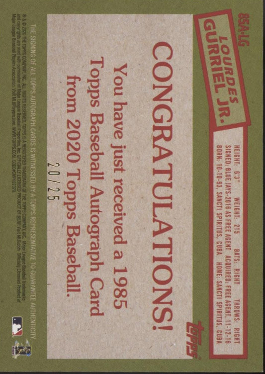 Lourdes Gurriel Jr. 2020 Topps 35th Anniversary Red Auto 20/25 #85A-LG