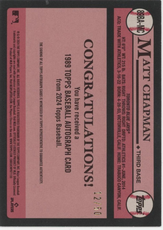 Matt Chapman 2024 Topps 35th '89 Gold Auto 12/50 #89BA-MC
