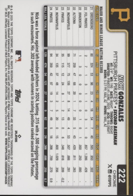 Nick Gonzales 2025 Topps Chrome Black Refractor 05/10 #222