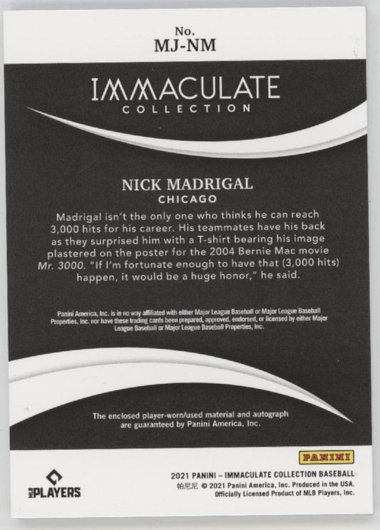 Nick Madrigal 2021 Panini Immaculate Collection Swatch RC Auto 04/25 #MJ-NM