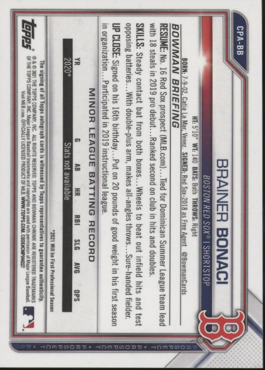 Brainer Bonaci 2021 Bowman Chrome Prospects Yellow Refractor Auto 66/75 #CPA-BB
