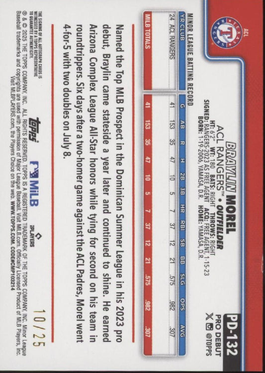 Braylin Morel 2025 Topps Pro Debut Orange Holo 10/25 #PD-132