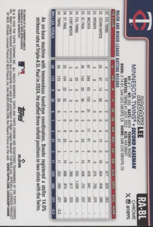 Brooks Lee 2025 Topps Chrome RC Auto #RA-BL