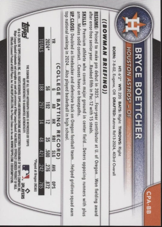 Bryce Boettcher 2025 Bowman Chrome Prospects Blue Refractor Auto 118/150 #CPA-BB