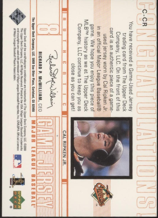 Cal Ripken Jr. 2000 Upper Deck Game Jerseys Swatch #C-CR
