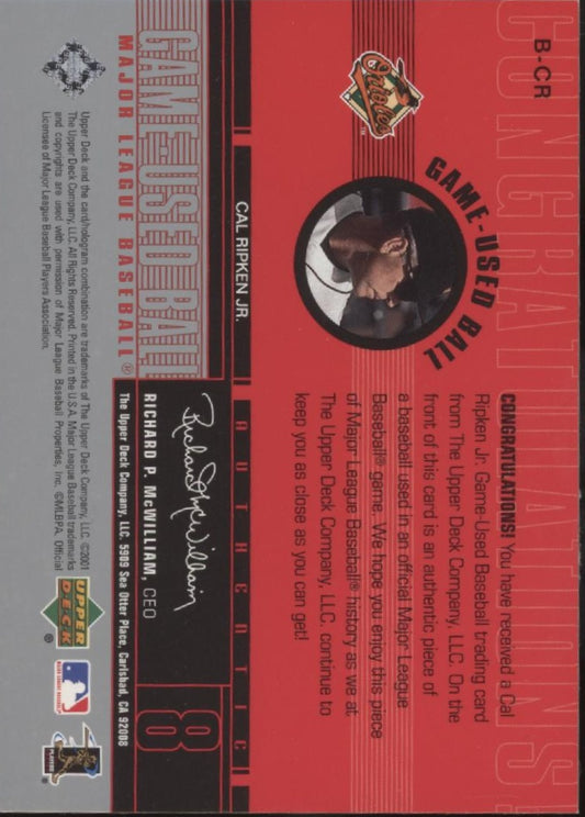 Cal Ripken Jr. 2001 Upper Deck Game Used Ball Relic #B-CR