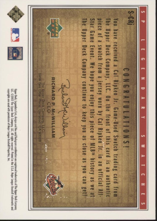 Cal Ripken Jr. 2002 Upper Deck SP Legendary Cuts Swatch #S-CRJ