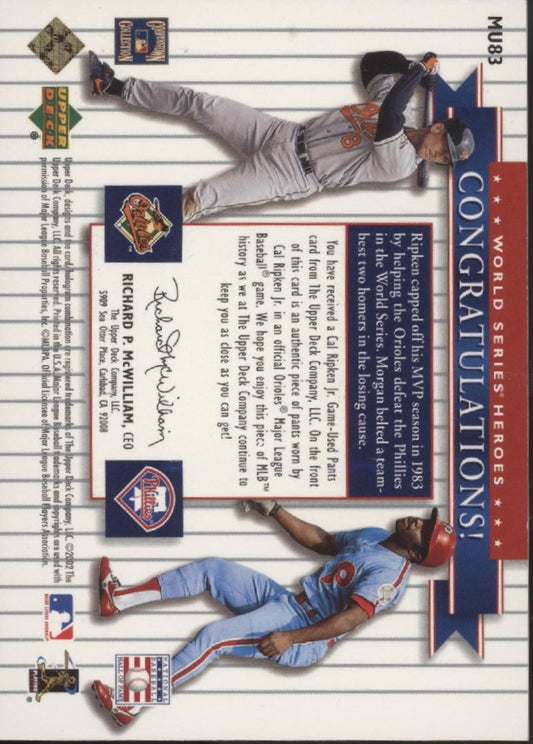 Cal Ripken Jr. / Joe Morgan 2002 Upper Deck Classic World Series Matchups Swatch