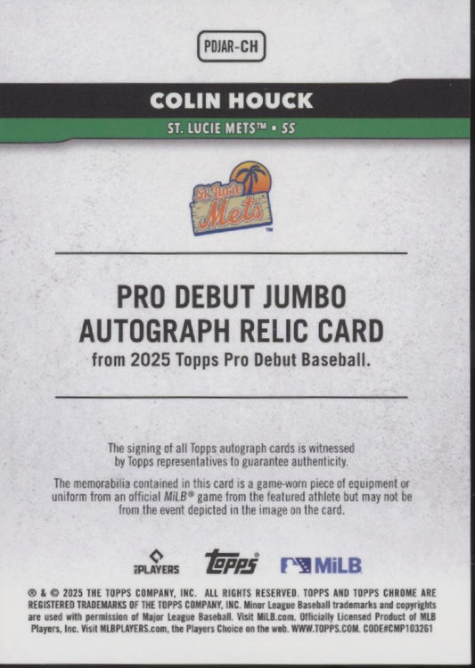 Colin Houck 2025 Topps Chrome Pro Debut Jumbo Swatch Auto 096/200 #PDJAR-CH