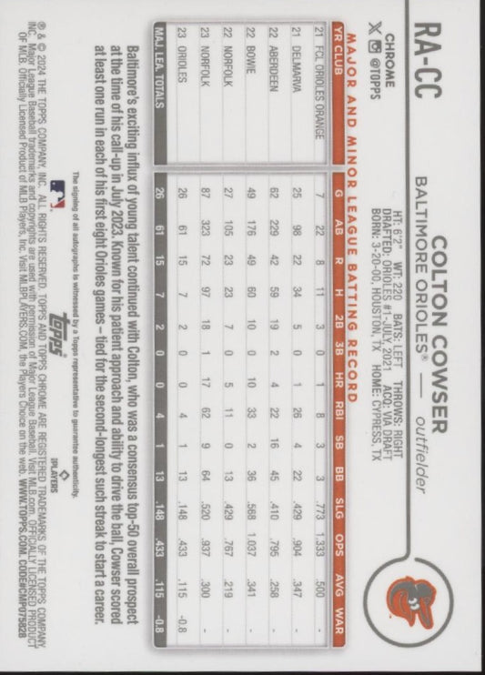 Colton Cowser 2024 Topps Chrome RC Auto #RA-CC