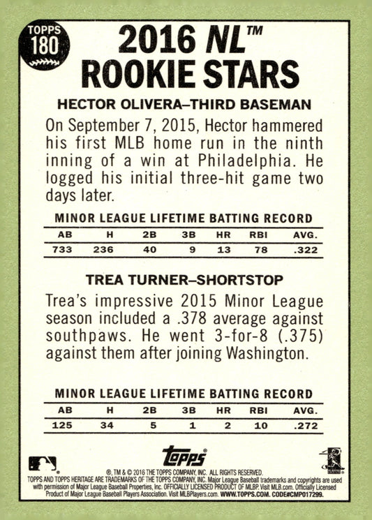 Hector Olivera / Trea Turner 2016 Topps Heritage NL Rookie Stars RC #180