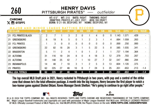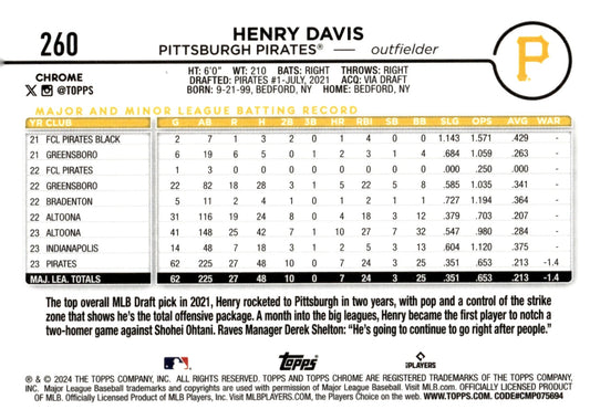 Henry Davis 2024 Topps Chrome Sepia Refractor RC #260 #1