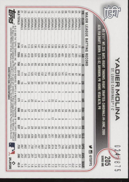 Yadier Molina 2022 Topps Series 1 Retail Foilboard 024/875 #205