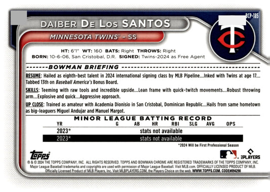 Daiber De Los Santos 2024 Bowman Chrome Mojo Refractor #BCP-185 #6