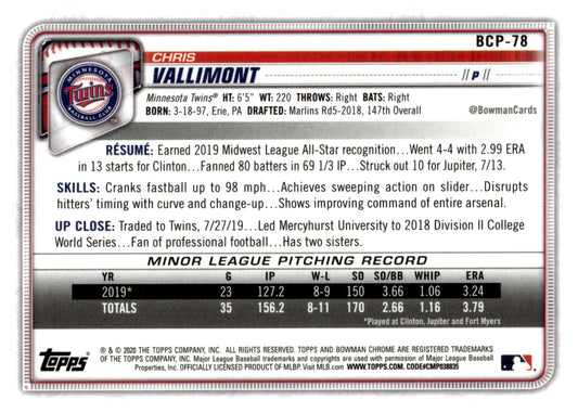 Chris Vallimont 2020 Bowman Chrome Mojo Refractor #BCP-78 #3