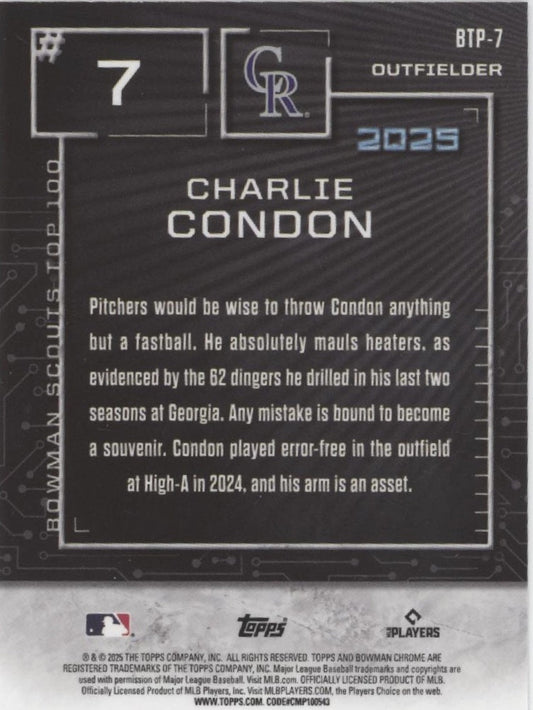 Charlie Condon 2025 Bowman Chrome Top 100 Refractor #BTP-7