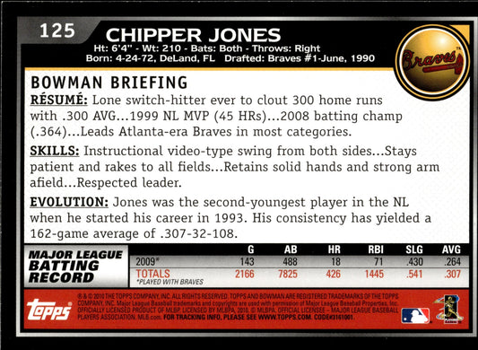Chipper Jones 2010 Bowman Gold Border #125