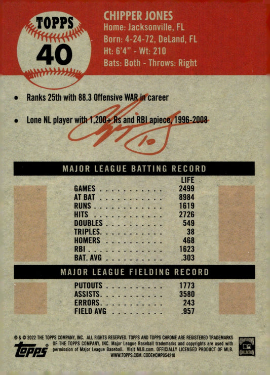 Chipper Jones 2022 Topps Chrome Platinum #40