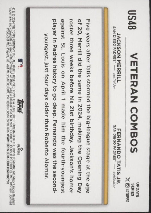 Young & Hungry 2024 Topps Update Series Merrill / Tatis #US48
