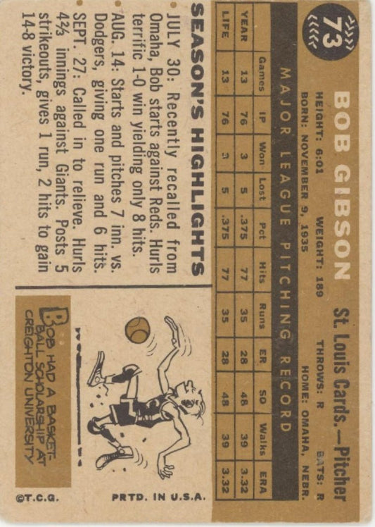 Bob Gibson 1960 Topps #73 St. Louis Cardinals PR