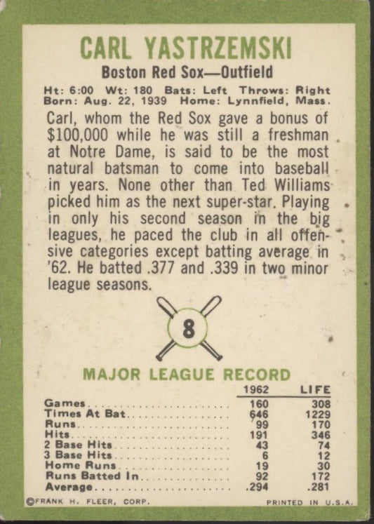 Carl Yastrzemski 1963 Fleer #8 Boston Red Sox VG