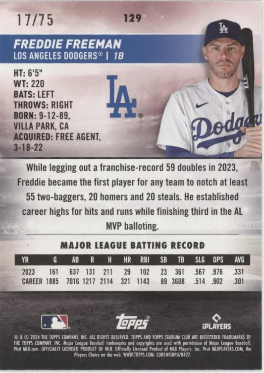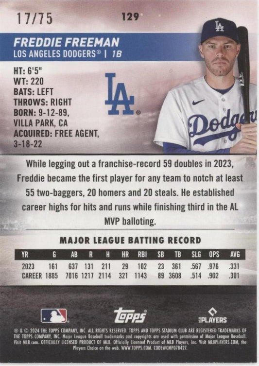 Freddie Freeman 2024 Topps Stadium Club Purple 17/75 #129