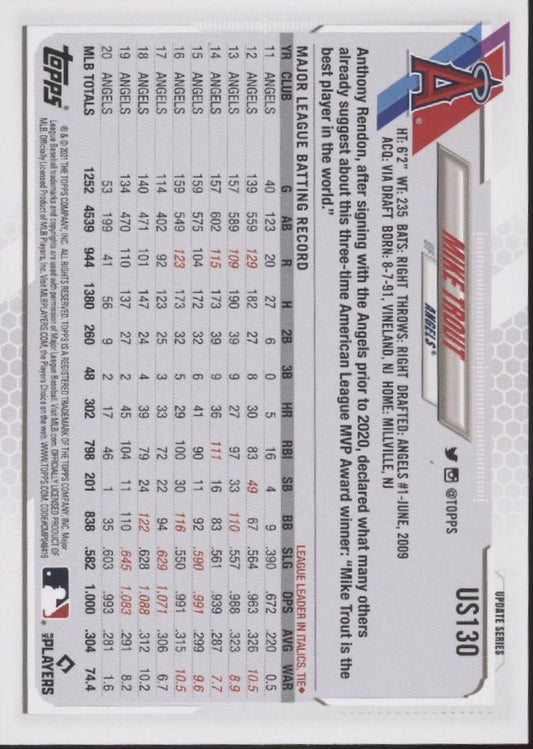 Mike Trout 2021 Topps Update Series 70 SP #US130